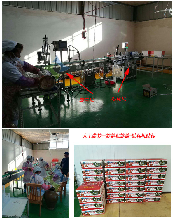 賓川匯民是一家專(zhuān)業(yè)生產(chǎn)韭菜醬腌菜的企業(yè),為了提高產(chǎn)量,經(jīng)過(guò)了解選購(gòu)了我們的真空旋蓋機(jī)和自動(dòng)貼標(biāo)機(jī),由人工灌裝腌菜后,交由旋蓋機(jī)進(jìn)行真空旋蓋再貼標(biāo),提高了一半的生產(chǎn)效率并節(jié)省了人力開(kāi)支,旋蓋機(jī)、貼標(biāo)機(jī)使用一段時(shí)間之后,該企業(yè)負(fù)責(zé)任了解全自動(dòng)化生產(chǎn)的優(yōu)勢(shì);打電話又咨詢訂購(gòu)了醬料全自動(dòng)灌裝機(jī),組成了全自動(dòng)韭菜醬腌菜包裝生產(chǎn)線;可以自動(dòng)完成整個(gè)包裝流程,既能節(jié)省了企業(yè)的人工成本,又可以減少食品在包裝過(guò)程中遭受污染的可能,提高食品包裝的安全性和衛(wèi)生性