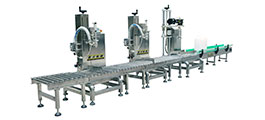 全封閉稱重灌裝流水線是針對于5-25公斤大規(guī)格的鐵桶、塑料桶等容器的自動化灌裝,大型定量灌裝生產線整合了自動上桶、自動定位、稱重灌裝、自動上蓋、貼標噴碼等生產工序