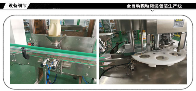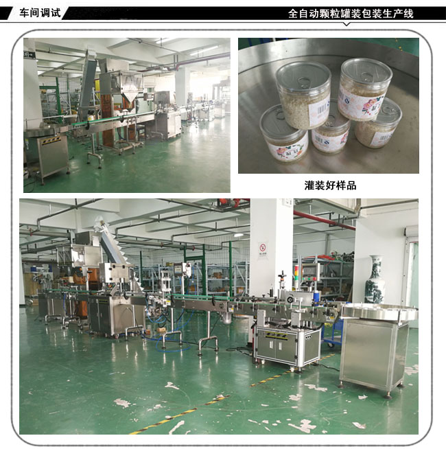 全自動顆粒罐裝包裝生產(chǎn)線-堅果灌裝封口貼標(biāo)生產(chǎn)線根據(jù)不同用戶的瓶裝,聽裝,桶裝,標(biāo)準(zhǔn)瓶,異形瓶及實際產(chǎn)品特性和用戶要求實現(xiàn)自動化;該設(shè)備能夠?qū)崿F(xiàn)人工上瓶、備料后,自動理瓶、稱重、灌裝、旋蓋、封口、貼標(biāo)、收罐等全過程的自動運行。減少勞動力,節(jié)約成品,實現(xiàn)無人化包裝生產(chǎn)